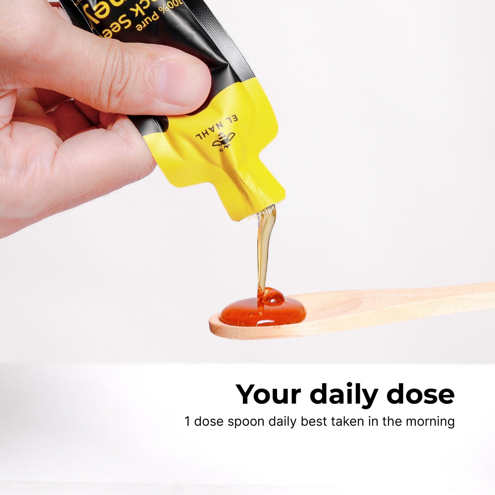 Experience the advantages of black seed honey effortlessly with our Honey Sachets. Ideal for individuals seeking a quick energy and immunity boost while on the move.